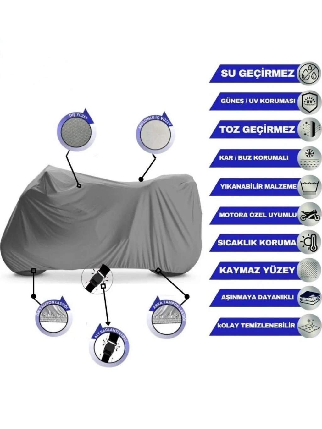 KALIN MATERYAL, SUYA VE RÜZGARA DAYANIKLI, İÇ ASTARLI, ÇEVRESİ LASTİKLİ, ALT KİTLEME KLİPSLİ