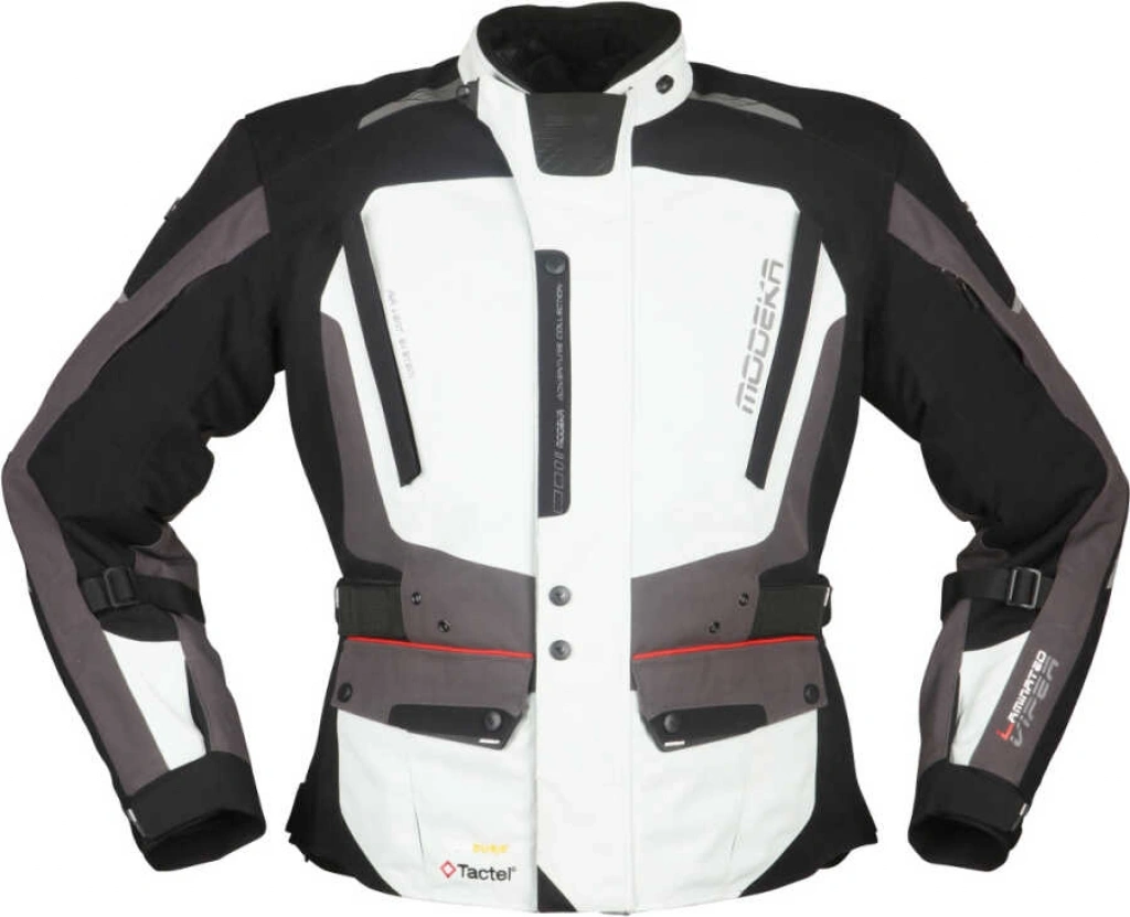 Modeka Viper LT Motosiklet Montu, dört mevsim kullanım için tasarlanmış, hafif ve konforlu bir touring montudur. 750D Tactel® dış kumaşı ve Humax® membranı sayesinde %100 su ve rüzgar geçirmezlik sunar. SAS-TEC® omuz, dirsek ve sırt korumaları, CE EN 1621-1:2012 (Seviye 2) sertifikalıdır ve dirsek korumaları yükseklik ayarlıdır.