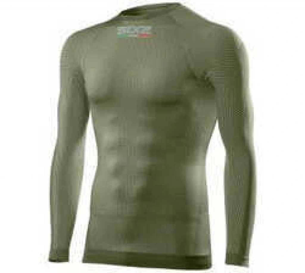 Cildin nefes almasını sağlayan ve her türlü hava koşulunda (açık veya kapalı) vücudun ısı düzenlemesini sağlayan karbon iç çamaşırı kumaşından üretilen SIXS uzun kollu yuvarlak yakalı jarse.