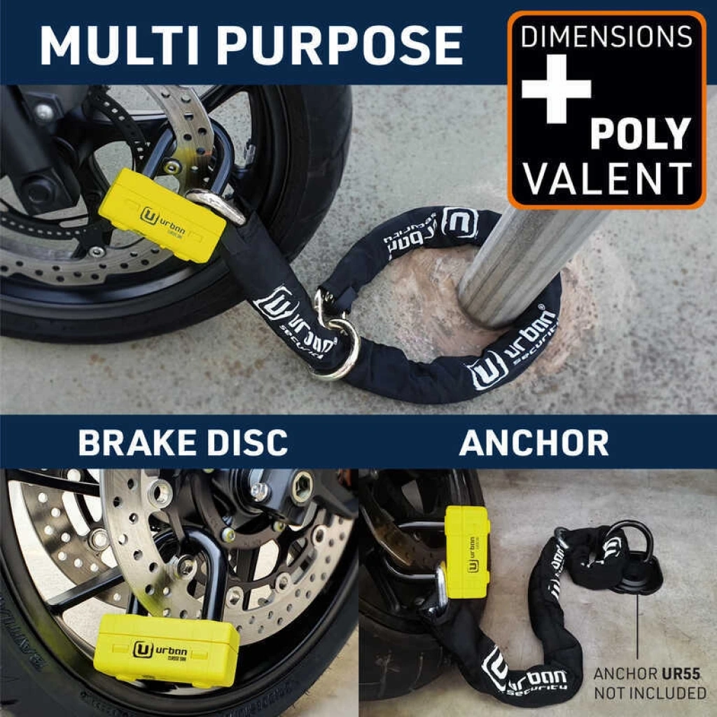 Zincir, URBAN UR75 MINI U disk kilidiyle güvence altına alınır. 18 mm kalınlığında güçlü şakle ve 67x46 mm iç ölçüler ile donatılmıştır. Yenilikçi SEK PLUS DISCTECH silindir ve çift kilitleme sistemi, şakleyi iki ucundan kilitleyerek saldırılara karşı direnci iki katına çıkarır.