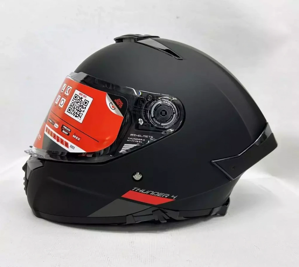 MT Helmets Thunder 4 SV, ECE 22.06 güvenlik standardı ile yeni nesil çarpışma testlerinden başarıyla geçmiş bir modeldir. Geniş görüş açısına sahip vizörü ve entegre güneş vizörü, farklı hava koşullarında sürüşü kolaylaştırırken, Pinlock uyumluluğu sayesinde buhar sorununu ortadan kaldırır. Aerodinamik yapısı ve gelişmiş havalandırma sistemi, yüksek hızlarda stabiliteyi korurken maksimum konfor sağlar.