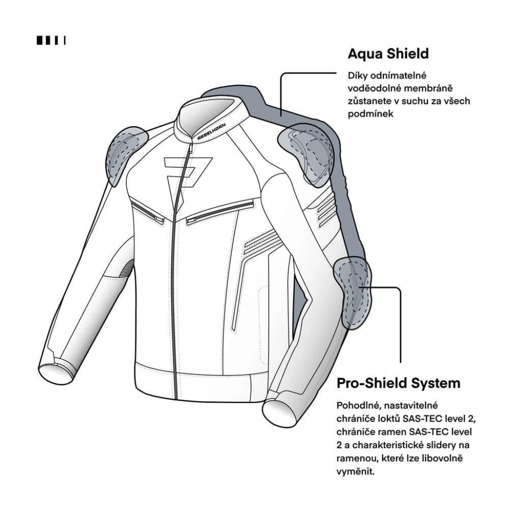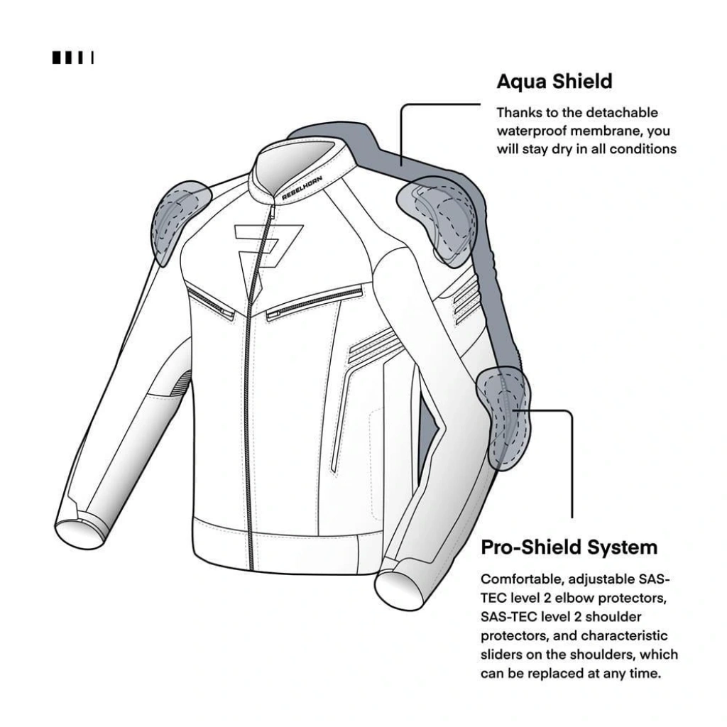 Rebelhorn Vandal tekstil motosiklet ceketi, sertifikalı koruyucular ve arka koruyucu için bir cep ile donatılmıştır. Aynı zamanda günlük kullanıma da uygundur. Verimli havalandırma ve su geçirmez membran, Vandal ceketi değişen hava koşullarına hazır hale getirir.